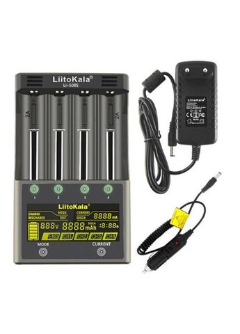 Зарядний пристрій Liitokala Lii-500S на 4 канали (для Ni-MH, Ni-CD, Li-Ion) з блоком живлення і автоадаптером LiitoKala Lii 500S - нова модель універсального зарядного пристрою від компанії Liitokala. Liitokala Lii-500S - універсальний зарядний пристрій з розширеним набором функцій, таких як: заряд, разаряд, тестування та вибір струму заряду. Ще однією фішкою нової моделі є наявність сенсорних кнопок (а не аналогових, як в інших зарядних пристроях). Зарядний пристрій Liitokala Lii-500S може працювати з акумуляторами різних форматів і складу (Li-Ion, Ni-Mh, Ni-Cd). У даній моделі є USB вихід, за допомогою якого Ви можете заряджати зовнішні пристрої (телефони, смартфони, планшети). Liitokala Lii-500S оснащене чотирма повністю незалежними каналами, що дозволяє Вам заряджати кожен акумулятор окремо, а також отримувати інформацію по кожному заряжаемому акумулятора (ємність, напруга, час заряду, рівень заряду). Зарядний пристрій Liitokala Lii-500S є вдосконаленою моделлю Liitokala Lii-500. Є USB-вихід для зарядки зовнішніх пристроїв. Особливості зарядного пристрою Liitokala Lii-500S: Універсальність - можливість заряджати різні типи акумуляторів Один зарядний пристрій Liitokala Lii-500S може заряджати різні за складом і формату акумулятори. Зарядний пристрій має рухливий мінусовий контакт в кожному каналі, завдяки чому кожен слот може підлаштовуватися під різну довжину акумулятора і забезпечувати надійний контакт. З Liitokala Lii-500S Вам не потрібно купувати кілька зарядних пристроїв - Ви зможете заряджати різні акумулятори одним зарядним пристроєм тим самим заощаджуючи кошти. Liitokala Lii-500S працює з такими акумуляторами: Ni-Mh/Ni-Cd: AAA, AA, C (R14), SC Li-ion: 18650, 14500, 18490, 18350, 17670, 17500, 16340 (rcr123a), 10440, 20700, 21700, 26650, 22650, 26500 та ін. Великий контрастний інформаційний дисплей Зардяное устройтсва Liitokala Lii-500S оснащений великим дисплеєм, на якому відображається вся необхідна інформація про акумулятор. На дисплеї відображаються вибрані параметри, а також реальні характеристики акумулятора, отримані в процесі заряду або розряду. На екрані Ви зможете побачити ємність, напруга, час роботи, вибраний режим роботи, рівень заряду батареї, а також вибраний канал. Багатий функціонал Liitokala Lii-500S володіє всіма необхідними функціями для сучасного зарядного пристрою. За допомогою цієї моделі Ви зможете не тільки заряджати акумулятори, але і виробляти розряд, тестувати ємність, і самостійно встановлювати струм заряду в разі необхідності. Можливість задавати струм заряду самостійно В даному зарядному пристрої Ви можете самостійно задавати струм заряду на кожен канал в діапазоні від 300 mA до 2000 mA. Для Ni-Mh і Ni-Cd акумуляторів: 500 mA, 700 mA, 1000 mA Для Li-Ion акумуляторів: 500 mA, 700 mA, 1000 mA, 2000 mA. USB вихід для зарядки зовнішніх пристроїв У Liitokala Lii-500S є USB вихід, за допомогою якого Ви зможете заряджати різні зовнішні пристрої, такі як телефони, смартфони, планшети і т. д. USB вихід працює як USB блок живлення 5В 1А, ним можна скористатися лише тоді, коли зарядний пристрій підключено до мережі: Функція ТЕСТ - визначення реальної місткості Зарядний пристрій Liitokala Lii-500S оснащений повноцінною функцією тестування, за допомогою якої Ви зможете визначати реальну ємність акумуляторів. Незалежні канали Зарядний пристрій Liitokala Lii-500S має чотири повністю незалежних каналу роботи. Кожен канал контролюється індивідуально, Ви зможете самостійно ставити на кожен канал свій режим роботи, встановлювати свій зарядний струм. Захист 
