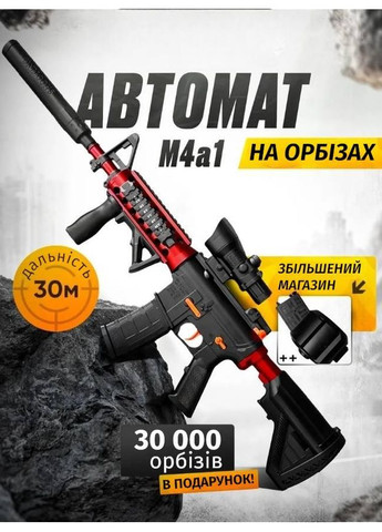 Дитячий автомат на орбізах – М4А1 в чорному кольорі з імітацією оптичного прицілу для ще більш точної стрільби + 30 тис орбіз в подарунок! Хороший вибір для подарунка, що запам'ятовується. Відмінно підійде як перша зброя для дитини. Невисока потужність та скорострільність робить цю модель безпечною для гри. Корпус автомата повністю виготовлений з ABS-пластика. Дана модель може використовуватися як з приєднаним оптичним прицілом так і з використанням механічного. Основною особливістю даного автомата є наявність додаткового барабану для орбіз. Барабан може вміщати в собі до 300 орбіз одночасно, що дозволить збільшити тривалість вашої стрільби. Регульований телескопічний приклад дозволить підстроїти зброю під себе. В автоматі доступні два режими стрільби: автоматичний та поодиночними пострілами. Також, не забувайте, ставити ваш автомат на запобіжник в час коли зброя не використовується. Характеристика товару Розмір – 91 см. Вік - 7+ Розмір орбізів – 7-8мм. Акумулятор - 7,4V Вага – 1150 грам Місткість магазину - 150 шт. Місткість барабану - 300шт. Максимальна дальність стрільби – 30 м. Комплектація: Магазин Барабанний магазин Рукоятка Приклад Імітований оптичний приціл Механічний приціл Глушник Акумулятор 7.4V Захисні окуляри Зарядний пристрій Набір орбізів. Орбізи Ідеальний варіант для іграшкової зброї - гідрогелеві кульки Orbeez. Після замочування у воді впродовж 3-4 годин, вони збільшуються до розміру 7-8 мм, зберігаючи при цьому свою форму і міцність. Завдяки цьому, вони не тріскаються і не пошкоджуються навіть під час використання в потужній іграшковій зброї. В упаковці ви знайдете приблизно 10 000 синіх кульок, які не мають жодного запаху або дефектів, а також не спричиняють алергію або фарбування рук. Для замочування пакетика кульок потрібно близько 200 мл води. Готові до використання кульки Orbeez ідеально підійдуть для акумуляторної зброї.