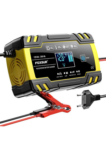 Імпульсний автоматичний зарядний пристрій Foxsur 6A Повністю автоматично: визначає тип і ємність АКБ; керує кулером для охолодження; вимикається, коли АКБ повністю заряджений. Пристрій має функцію пам'яті, що дозволяє продовжити зарядку в тому ж режимі після вимкнення живлення, а також функцію відновлення (ремонт). Підтримка AGM, кальцієвих, гелевих, VRLA та Wet батарей Пристрій має змогу зарядити всі популярні та розповсюджені типи АКБ, які широко використовуються у легковому транспорті, мотоциклах та навіть моторних човнах. 4 режими зарядки для різних акумуляторів У пристрої окремо реалізовано режими для: 1. AGM акумуляторів; 2. Інших автомобільних АКБ до 120 А/г; 3. Мото - для мото акумуляторів (або GEL, AGM малої ємності) ємність від 4 до 30 А/г; 4. Ремонт (repair) - відновлення старих АКБ або тих, які довгий час не були в експлуатації. 3 ступені імпульсної зарядки Імпульсні зарядні пристрої є сучаснішими варіантами, які впливають на АКБ високочастотним струмом, що веде до подачі заряду малими імпульсами. Заряджай АКБ до 120 А/г Захист та надійність Пристрій має захист: від перенапруги від короткого замикання від перегрівання від перезарядки від зміни полярності від надструму