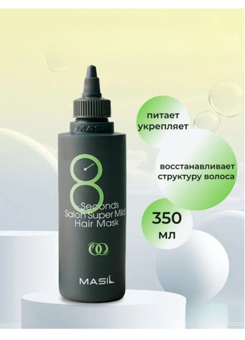 Маска 8 Seconds Salon Super Mild Hair Mask - глибоко зволожує, зміцнює структуру пасм, усуває ламкість і сплутаність. Маска створює невидиму захисну оболонку, делікатно відновлює волосся після впливу фена, фарбування, хімічної завивки і випрямлення. Засіб покращує надходження поживних речовин до волосся, зміцнює волосяні фолікули та стимулює ріст волосся. Маска нормалізує pH-баланс шкіри голови, усуває лупи та запобігає випадінню. В складі є комплекс амінокислот - відновлює структуру волосся, повертає їй здоровий вигляд. Екстракт полину - усуває лупу, регулює вироблення себуму, має заспокійливу дію після різних процедур. Екстракт м'яти - освіжає, заспокоює подразнення шкіри. Маска демонструє ефект салонної процедури і покращує живлення волосяних фолікулів. Засіб від Masil відновлює волосся після термічного та хімічного впливу. Нанесення: Нанесіть зволожувальну маску на вологе чисте волосся і шкіру голови, м'яко помасажуйте і ретельно змийте теплою водою. Склад: Dipropylene Glycol, Myristyl Alcohol, Water, 1,2-Hexanediol, Hamamelis Virginiana (Witch Hazel) Leaf Extract, Salvia Officinalis (Sage) Leaf Extract, Melissa Officinalis Leaf Extract, Mentha Piperita (Peppermint) Extract, Lavandula Angustifolia (Lavender) Flower Extract, Houttuynia Cordata Extract, Eucalyptus Globulus Leaf Extract, Cetrimonium Chloride, Arginine, Leucine, Tryptophan, Lysine, Isoleucine, Threonine, Methionine, Histidine, Asparagine, Alanine, Proline, Glutamic Acid, Glutamine, Glycine, Valine, Phenylalanine, Aspartic Acid, Tyrosine, Serine, Cystine, Glycerin, Hydrolyzed Barley Protein, Hydrolyzed Corn Protein, Hydrolyzed Potato Protein, Hydrolyzed Rice Protein, Hydrolyzed Rice Bran Protein, Hydrolyzed Soy Protein, Hydrolyzed Oat Protein, Hydrolyzed Pea Protein, Hydrolyzed Wheat Protein, Hydrolyzed Sweet Almond Protein, C13-15 Alkane, Fragrance