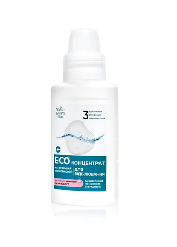 EКОконцентрат натуральний для відбілювання та виведення стійких, пігментних забруднень на основі унікальної активної форми легкодоступного кисню (PAP кислоти) відмінно усуває плями пігментного походження на білих тканинах усіх типів при низьких температурах води та поєднує в собі наступні функції: Відбілювання. Усуває сірий наліт на білих речах та повертає сяючу білизну. Захищає білі речі від зміни кольору. Ефективний вже при температурі води 20 °С. Найкращий ефект відбілювання досягається при температурі до 40°С на попередньо випраній тканині. Виведення плям пігментного походження: сік, фрукти, вино, кава, чай, кров, зеленка, йод, фарба тощо. Виведення плям від іржі Антибактеріальна дія Високоефективний проти грибків та спор. Може використовуватись в якості засобу для знищення грибку на твердих поверхнях (кахель, кераміка, пластик, резина, дерево тощо) Дезодоруючий ефект. Знищує неприємні запахи. Підсилювач якості прання. Особлива форма активного кисню дозволяє комбінувати засіб з іншими засобами для прання та виведення плям з ензимами, не зменшуючи їх ефективності. Підвищує ефективність інших пральних засобів, що полегшує видалення плям та відбілювання речей. Догляд за волокнами тканин. Забезпечує захист волокон тканин, запобігає кошлатанню і розтягуванню речей. Ваші речі виглядатимуть як нові вдвічі довше. Універсальний засіб. Підходить як для ручного прання, так і для використання в пральних машинах будь-якого типу. Запобігає вапняному нальоту, не потребує додаткових пом’якшувачів води. Нейтралізує неприємні запахи в пральній машині. Спосіб застосування Збовтати перед застосуванням. Для видалення плям перед пранням нанести засіб на пляму, залишити на 5 хвилин, випрати річ у зручний спосіб. Для видалення плям і відбілювання під час прання додати 15-30 мл ЕКОконцентрату до основного засобу. Для виведення складних застарілих плям і відбілювання розчинити 15-30 мл засобу в 4-5 л води, замочити речі на 30-60 хв, потім випрати у зручний спосіб. Рекомендовано використовувати на білих та світлих речах. Перед застосування перевірити засіб на непомітній ділянці виробу.​ Склад Вода очищена, 15-30% пероксікарбонова кислота PAP (активний кисень).