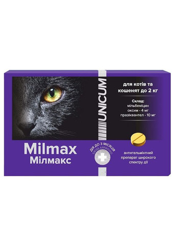 AnimAll VetLine DeWorm Ultra для кішок вагою від 2 кг проти круглих та стьожкових гельмінтів. Профілактика дирофіляріозу. Застосування: Таблетки призначають для профілактики та дегельмінтизації при захворюваннях, викликаних як личинковими формами, так і статевозрілими цестодами - Dipylidium caninum, Taenia spp., Echinococcus spp. та нематодами – Ancylostoma tubaeforme, Toxocara cati, Dirofilaria immitis (профілактика захворювання), в т. ч. при нематодозах, цестодозах, комбінованих нематодо-цестодозних інвазіях. Фармакологічні властивості ATC-vet QP534, ендектоциди (QP54АВ51, мільбеміцин, комбінації). Таблетки Деворм Ультра для кішок відносяться до групи ендетоцидів, що містять дві активні діючі речовини. Таблетки належать до групі комбінованих антигельмінтних препаратів нематодоцидної та цестодоцидної дії. Активні компоненти, що входять до складу препарату, забезпечують його широкий спектр антигельмінтної дії. Мільбеміцина оксим - макроциклічний лактон, що отримується в результаті ферментативної діяльності Streptomyces hygroscopicus var. Aureolacrimosus, активний відносно личинок і імаго нематод, паразитуючих в шлунково-кишковому тракті кішок, а також личинок Dirofilaria immitis. Механізм дії мільбеміцина обумовлений підвищенням проникності клітинних мембран для іонів хлору (Cl-), що призводить до надмірної полярізації мембран клітин нервової і м'язової тканини, паралічу і загибелі паразита. Максимальна концентрація мільбеміцина оксима в плазмі крові тварини досягається протягом 2-4 годин, біодоступність становить близько 80%. Із організму виводиться в основному в незмінному вигляді. Празиквантел є ацильованим похідним піразинізохіноліна, володіє вираженою дією проти цестод і нематод. Підвищуючи проникність клітинних мембран паразита для іонів кальцію (Ca2 +), викликає деполяризацію мембран, скорочення мускулатури і руйнування тегумента, що призводить до загибелі паразита і сприяє його виведенню з організму тварини. Максимальна концентрація празиквантель в плазмі крові тварин досягається через 1-4 години. Він піддається швидкій і практично повній біотрансформації в печінці. Рівень зв'язування в плазмі становить близько 80%, виводиться з організму протягом 2 діб в основному з сечею. Таблетки для кішок за ступенем впливу на організм відносяться до речовин малонебезпечних, в рекомендованих дозах не надають сенсибілізуючу, ембріотоксичну і тератогенну дії, добре переносяться котами різних порід і віку. Препарат токсичний для бджіл, а також риб і інших гідробіонтів. Протипоказання: Не застосовувати тваринам із відомою підвищеною індивідуальною чутливістю до компонентів препарату (у тому числі в анамнезі); Не застосовувати тваринам з вираженими порушенням функції нирок та печінки; Не застосовувати виснаженим тваринам та хворим на інфекційні хвороби; Не застосовувати кошенятам молодше 6-тижневого віку і масою тіла менше 0,5 кг. Особливостей дії препарату при його першому застосуванні і скасуванні не виявлено. Застереження: При передозуванні препарату у деяких тварин можуть спостерігатися пригнічений стан, слинотеча, парез м'язів, тремтіння і (або) хитка хода. Ці симптоми проходять спонтанно протягом доби, при необхідності тварині призначають засоби симптоматичної терапії. Не слід застосовувати кошенятам молодше 6-тижневого віку і масою тіла менше 0,5 кг. Можливість застосування препарату під час вагітності та ла