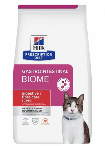 Сухий корм для кішок Hill's Prescription Diet Gastrointestinal Biome Stress – це повнораційний дієтичний корм, що легко засвоюється, спеціально розроблений для підтримки травної системи та емоційної рівноваги у дорослих кішок. Допомагає усунути розлади всмоктування у кишечнику та запобігає рецидивам шлунково-кишкових розладів. Завдяки підвищеному вмісту клітковини, натрію та калію він сприяє швидкому відновленню нормальної роботи шлунково-кишкового тракту. Технологія ActivBiome+ із клінічно доведеною ефективністю живить мікробіом вашого улюбленця для синтезу корисних постбіотиків. Сприяє заспокійливому ефекту та допомагає знизити ризик повторного прояву розладів травлення.