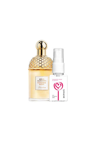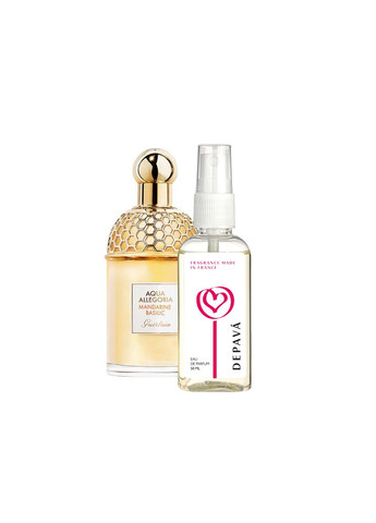 Відчуйте себе впевнено та вишукано кожного дня. Жіночі парфуми українського бренду DEPAVA підкреслять ваш стиль, створюючи ефект неперевершеної привабливості. Завдяки вишуканій композиції ароматів, вони стають невидимим атрибутом вашої індивідуальності, адже наші аромати створені саме для тих, хто цінує якість і стиль. Парфум DEPAVA (Guerlain Allegoria Mandarine Basilic) жіночий - Захоплюючі п'янкі мотиви аромату відкриваються бадьорим тандемом освіжаючого бергамота та заспокійливої лаванди, які переплітаються з медовою солодкістю жасмину та витонченого ірису. Тип аромату: цитрусові. Початкова нота: апельсиновий цвіт, гіркий апельсин, зелений чай, клементин, плющ. Серцева нота: базилік, мандарин, півонія, ромашка. Кінцева нота: амбра, сандалове дерево.