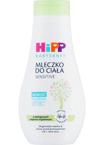 Ніжне зволожувальне молочко для дітей від бренда HiPP не містить ароматизаторів, барвників, силіконів і парабенів, що провокують алергічні реакції, сухість, подразнення, почервоніння. Делікатна формула засобу адаптована до чутливої шкіри новонароджених. BabySanft Milk Lotion піклується про живлення, відновлення і зміцнення епідермісу. Універсальний продукт підвищує щільність його захисного бар’єра, ліпідної мантії, бере участь у процесі загоєння механічних пошкоджень, пом’якшує загрубілі ділянки та неабияк освіжає, усуваючи дискомфорт, спричинений зовнішніми факторами. Особливості BabySanft Milk Lotion від HiPP: - легка консистенція рівномірно розподіляється, швидко всотується;- не залишає липкості, жирності на тілі, бруду — на одязі;- делікатна формула підходить немовлятам від народження;- без речовин, що сушать і подразнюють вразливу шкіру;- містить натуральну мигдальну олію, пантенол, масло ши;- має живильні, зволожувальні, відновлювальні властивості;- вирізняється протизапальними, заспокійливими перевагами;- бере участь у природному процесі загоєння ран;- захищає шкіру від негативного впливу зовнішніх факторів;- прискорює її регенерацію;- зміцнює ліпідну мантію, запобігаючи втраті води;- бореться з наявними ознаками дегідратації;- веганський продукт, що не тестується на тваринах.