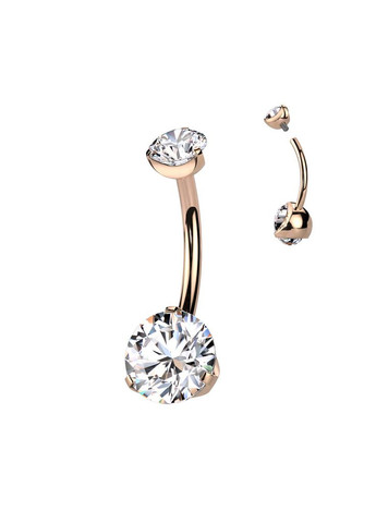 Прикраса для пірсингу пупка (банан) з круглим фіанітами. Титановий сплав Ti 6Al-4V ELI (ASTM F136), що застосовується для створення виробу, є біосумісним і гіпоалергенним. Ідентичний сплав використовується для виготовлення медичних імплантів та інструментів. Пірсинг пупка з титану безпечний для здоров'я, його можна носити не тільки в проколах, що вже загоїлися, але і використовувати для первинного пірсингу. Титан не окислюється при контакті зі шкірою і викликає подразнень. Титанові вироби без покриття не змінюють відтінок з часом та ідеально підходять для щоденного носіння. Пірсинг із титану можна стерилізувати в автоклаві. Матеріал: титан ASTM F-136 Товщина штанги: 1,6 мм Довжина штанги: 10 мм Розмір каміння: 5х8 мм