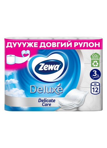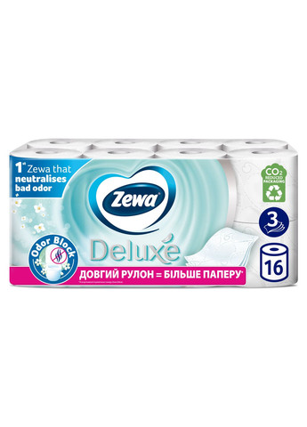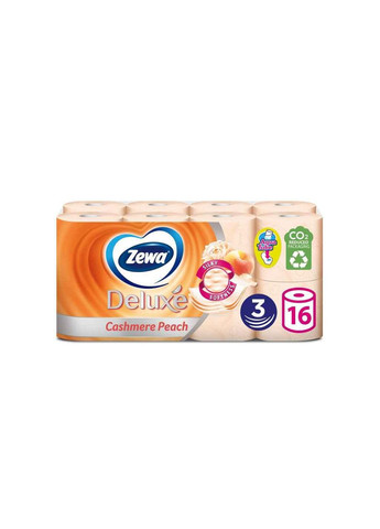 Туалетний папір Zewa (Зева) Deluxe – це м'який поглинаючий папір з європейською якістю, довгим рулоном та турботою про навколишнє середовище! Основні переваги: тришаровий туалетний папір без аромату делікатно очищає та ніжно дбає про ніжну шкіру завдяки м'яким та поглинаючим подушечкам три пухкі шари відмінно вбирають вологу, тому ви використовуєте менше відривів за один раз унікальністю туалетного паперу Zewa є втулка Aqua Tube, яку можна просто змити в унітаз, тому що вона легко розчиняється у воді для виробництва використовується лише сертифікована целюлоза, отримана відповідно до принципів дбайливого ставлення до природи упаковка містить повторно перероблений пластик та придатна до переробки зменшення викиду вуглецевого сліду у зв'язку з використанням переробленого пластику за результатами оцінки життєвого циклу Есіті сертифікат видано дерматологічним інститутом Німеччини DermaTronnier GmbH & Co. KG Institut für experimentelle Dermatologie Universität Witten – Herdecke Характеристики Кількість рулонів: 24 Кількість шарів: 3 Довжина рулону: 19,3 м Виробник: Zewa.