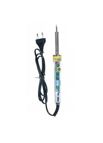ZD-70D — це мережевий електричний паяльник із керамічним нагрівачем, призначений для ручної пайки, з можливістю роботи в двох режимах потужності. Характеристики і режим роботи Напруга живлення: 220 В. Потужність: 20 Вт (в режимі очікування / без натискання кнопки); під час натискання/утримання кнопки — до 130 Вт. Тип нагрівального елементу: керамічний — дає швидкий розігрів і має меншу інерційність порівняно з нихромовим. Жало: змінне, стандарт типу N1. Рукоятка: пластикова (ізоляційна), легка, що робить паяльник зручним для тривалої роботи. Вага (приблизно): близько 100 грам з кабелем — це робить його легким і зручним у користуванні. Для чого підходить ZD-70D ZD-70D добре підходить для пайки радіодеталей, електронних компонентів на друкованих платах, а також дротів, клем, роз'ємів і т.п. У “низькому” режимі (20 Вт) він підходить для делікатної пайки чутливих компонентів, щоб не перегріти їх. При необхідності швидко нагріти жало — натискаєте кнопку, і нагрів збільшується до 130 Вт — це зручно для більш “грубої” пайки (дроти, товсті провідники, великі контакти). Керамічний нагрівач дає відносно швидкий прогрів, і змінне жало дає можливість заміни наконечника, якщо він зноситься. Особливості / обмеження Щоб перейти в режим 130 Вт — треба натиснути і утримувати кнопку на рукоятці; цей режим розрахований на короткотривалу пайку. Паяти в максимально гарячому режимі не рекомендується дуже довго — через це можна пошкодити жало або нагрівач.