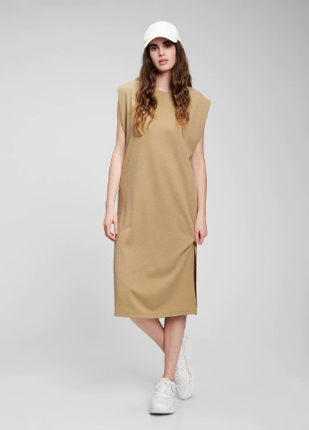 Облягаючий крій довжини міді вигідно підкреслює жіночі форми.