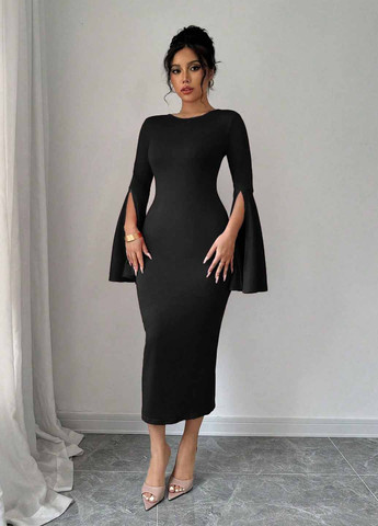 Унизу сукні, з боків, виконані невеликі розрізи, що забезпечують свободу рухів і роблять силует легшим та більш сучасним.