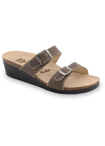 Ортопедичні шльопанці Bogota - стильний коричневий завжди в тренді. Розроблено за участю європейських лікарів-ортопедів! Підходять до повсякденного, спортивного, і не суворого ділового літнього стилю, до суконь, сарафанів, джинсів і шортів. Взуття Grubin виготовляється виключно з екологічно чистих матеріалів, які безпечні для здоров'я людини і навколишнього середовища в тісній співпраці з лікарями-ортопедами. Матеріалом підошви є суміш кори Середземноморського коркового дуба з натуральним латексом, за рахунок чого підошва міцна, гнучка і володіє відмінними амортизаційними властивостями для комфортної ходьби. Верхній шар устілки - велюрова шкіра найвищої якості, яка вбирає вологу, не ковзає і не натирає. Низ підошви з високоякісної мікропористої гуми забезпечує стійкий контакт з твердими поверхнями і довговічний у носінні. Матеріали верху з натуральних і штучних матеріалів спеціально оброблені зсередини, щоб уникнути натирання шкіри стопи. Всі деталі вирізаються і кріпляться вручну. функції: Правильний розподіл навантаження на стопи; Профілактика хвороб стопи (плоскостопість, «кісточка», деформації пальців); Корекція поздовжньої і поперечної плоскостопості, «кісточки»; Зниження навантаження на поперек, хребет і суглоби; Запобігання травмування шкіри, зв'язок і суглобів; Поліпшення кровообігу і зниження набряклості; Профілактика варикозного розширення вен і хвороб ніг; Профілактика плоскостопості і варикозу при вагітності; Комфортне пересування з надмірною вагою; Помітне полегшення при постійному знаходженні «на ногах»; Підходить для носіння на вулиці і в приміщенні. Матеріал верху: Шкіра - довговічна і міцна натуральна шкіра високої якості з гладкою і однорідною лицьовою поверхнею. підошва: Fashion - підошва з викладенням поздовжнього і поперечного склепінь, менш виражених, ніж в традиційній підошві. Висота танкетки може відрізнятися в різних моделях.