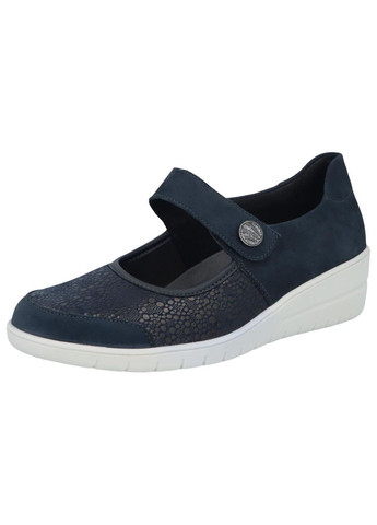 Модель Solidus Helia дуже зручні і м'які туфлі темно синього кольору з ремінцем від Solidus на злегка піднятому каблуці. Модель Helia особливо вирізняється особливою м'якістю, завдяки чому ідеально підходить власницям чутливих стоп. Еластична шкіра стрейч розвантажує проблемні зони стопи. Взуття має знімні устілки з корка і з покриттям з дихаючої мікрофібри, які за необхідності можна замінити на індивідуальні ортопедичні устілки. Нековзна підошва забезпечує безпеку і стійкість на будь-якій поверхні. Повнота: H Зручна застібка липучка дає змогу оптимізувати точність посадки по нозі, що запобігає утворенню мозолів і натертостей. Натуральні високоякісні матеріали гарантують довгий термін служби та збереження профілактичних властивостей. Широка носочна частина забезпечує природне розташування пальців стопи, запобігаючи деформації суглобів пальців. М'які внутрішні шви і відсутність жорсткого підноска виключають дискомфорт і натирання шкіри. Високоеластичний матеріал Nappaflex (власна розробка компанії Solidus) розвантажує проблемні зони, не тисне на деформовані ділянки стопи. Знімна устілка з натурального корка зі вставками-амортизаторами підтримує склепіння стопи та рівномірно розподіляє навантаження. Внутрішнє покриття взуття - матеріал Fashmo має дихаючі й антибактеріальні властивості та легко миється. Гнучка, міцна і легка підошва з поліуретану з повітряними подушками знижує ударне навантаження під час ходьби, а протиковзкий рельєф забезпечує стійкість на будь-якій поверхні. Модель підійде людям із широкими стопами та високим підйомом. Призначення, показання до застосування: натоптиші; тверді мозолі; плоскостопість; захворювання хребта; профілактика плоскостопості; Неврома Мортона; п'яткова шпора; молотоподібний палець; вальгусна деформація 1-го пальця стопи (Hallux valgus) ; для діабетиків; вальгусне відхилення кістки п'яти; варусне відхилення кістки п'яти; надлишкова вага; вагітність; виражена набряклість стопи; ХВН (хронічна венозна недостатність); корекція різниці у довжині стоп до 1 см