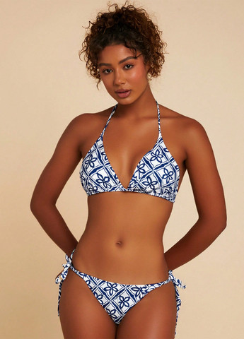 Стильний роздільний жіночий купальник халтер з високою талією. Купальник прикрашений квітковим малюнком. Бюст на поролоні, зав'язується на спинці. Бретелі пришиті, довжина не регулюється, зав'язуються на шиї. Плавки високі, є підкладка. Матеріал: 82% поліамід, 18% еластан Колір: чорний. Розмір: S, M, L, XL, 2XL Параметри: S: чашка - А-В, обхват під грудьми - 80-85, обхват грудей - 85-90, обхват стегон - 85-90, талія - 65-70; М: чашка В, обхват під грудьми - 85-90, обхват грудей - 90-95, обхват стегон - 90-95, талія - 70-75; L: чашка - З, обхват під грудьми - 90-95, обхват грудей - 95-100, обхват стегон - 95-100, талія - 75-83; ХL: чашка - З-D, обхват під грудьми - 95-100, обхват грудей - 100-108, обхват стегон - 100-108, талія - 83-90; 2ХL: чашка - D-E, обхват під грудьми - 100-105, обхват грудей - 108-115, обхват стегон - 108-115, талія - 90-95; 3ХL: чашка - E, обхват під грудьми - 105-110, обхват грудей - 115-120, обхват стегон - 115-120, талія - 95-100. Можливі розходження в параметрах на 1-3см.