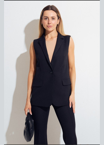 Елегантний подовжений жилет в класичному чорному кольорі - універсальне рішення для стильних жінок . Лаконічний крій , елегантні лінії та бездоганна посадка зроблять ваш образ витонченим та впевненим. Модель від українського виробника представлена в 3 х розмірах : 42 , 44 , 46. Виконана з костюмної тканини - тканина , яка гарно тримає форму виробу , не розтягується , не деформується , витримує багаторазові прання , не втрачаючи зовнішній вигляд. Жакет на підкладці має на спинці 2 невиликих розріза , що створюють елегантний силует , забеспечуючи свободу рухів. Жилет має 2 накладних кармани та застібку на гудзику, (Всі заміри жилету на 2х останніх фото) . Модель дуже стильна , елегантна та універсальна. Універсальний дизайн жилету чудово поєднується з брюками , джинсами , спідницями та сукнями. Ідеальний для офісу , ділових зустрічей , прогулянок , та вечірніх образів. Модель можуть шукати як : жилет класичний жіночий жилет- безрукавка жилет оверсайз елегантний жилет подовжений класичний брючний костюм жилет весна - літо жакет чорний демисезон