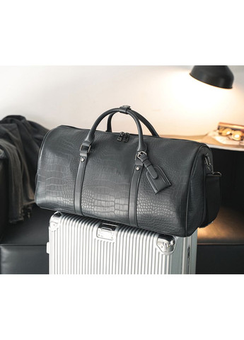 Дорожня сумка рептилія чорного кольору — це ідеальний аксесуар для тих, хто цінує та функціональність. Створена з високоякісної екошкіри преміум класу, ця сумка стане вашим надійним супутником у поїздках літаками та поїздами. Її універсальний дизайн підходить як для чоловіків, так і для жінок, що робить її чудовим вибором для міських мешканців. З розмірами 50 см завдовжки, 23 см завширшки та 25 см заввишки, сумка досить містка для ваших речей, але при цьому відповідає стандартам ручної поклажі. Це означає, що ви зможете взяти її з собою в будь-яку подорож, не переймаючись додатковими витратами на багаж. Переваги: Матеріал: Виготовлена з якісного та щільного екошкіри, що забезпечує довговічність та легкість у догляді. Комфорт: Плечовий ремінь у комплекті дозволяє зручно носити сумку в руках або на плечі, звільняючи ваші руки. Фурнітура: Якісна металева фурнітура надає виробуного вигляду та забезпечує надійність у використанні. Стильний дизайн: Чорний колір та текстура рептилії роблять сумку універсальним елементом вашого гардеробу, який легко поєднувати з різними стилями одягу. Ця дорожня сумка ідеально підійде для: Частих мандрівників, яким потрібнана та функціональна ручна поклажа. Міських мешканців, які шукають зручне рішення для повсякденних поїздок. Тим, хто цінує якість та в аксесуарах. Сумка стане чудовим вибором для поїздок на вихідні, відряджень або просто для походів містом. Вона легко вміщує всі необхідні речі, такі як одяг, косметика або ноутбук, і виглядаєно і елегантно. Не проґавте можливість придбати цю унікальну дорожню сумку рептилія чорного кольору, яка стане вашим незамінним помічником у будь-яких поїздках!