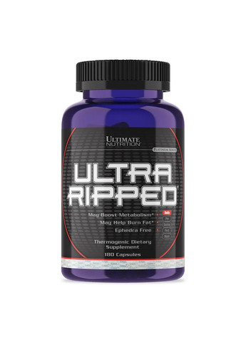 Ultimate Nutrition Ultra Ripped - потужний термогенний жироспалювач, який допоможе швидко і ефективно позбутися від підшкірного жиру. І нехай вас не бентежить короткий склад добавки: туди потрапили тільки найнадійніші і робочі інгредієнти. Тільки для повнолітніх спортсменів! Призначення Ultimate Nutrition Ultra Ripped: стимуляція жироспалювання; посилення термогенеза; допомога в контролі апетиту; промальовування м'язового рельєфу; підвищення витривалості; зменшення втоми; антиоксидантний захист; скорочення часу відпочинку між підходами. До складу комплексу входять різні рослинні екстракти і хром. Виробник гарантує чистоту сировини і безпеку добавки. Переваги Ultimate Nutrition Ultra Ripped: заснований на рослинних компонентах; реально помітний вплив; підходить чоловікам і жінкам; американське якість; ефективна концентрація активних інгредієнтів; зручна форма капсул; велика упаковка; доступна ціна. Як приймати Ultimate Nutrition Ultra Ripped У перший тиждень приймайте по одній капсулі два рази на день за годину до їжі. З другого тижня і далі приймайте по дві капсули двічі на день. Капсули потрібно ковтати цілими, запиваючи великою кількістю чистої води. Не приймайте більше чотирьох капсул на добу. Не приймайте добавку в другій половині дня. Не приймайте одночасно з іншими жиросжигателями. Для найкращих результатів дотримуйтесь дієти і тренуйтеся. Прийом комплексу протипоказаний вагітним і годуючим жінкам, підліткам до 18 років, людям з хворим серцем, а також при наявності індивідуальних протипоказань. Зверніться до лікаря, якщо після прийому добавки ви відзначаєте погіршення самопочуття. Зберігайте добавку в недоступному для дітей місці. Не допускайте попадання всередину вологи. Бережіть від прямого сонячного світла.