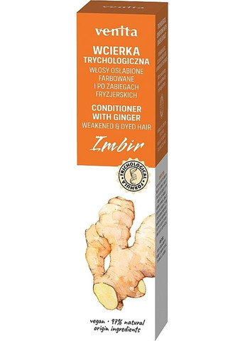 Багатство природних компонентів здавна служить для підтримання здоров'я і краси. Зокрема, цей засіб натхненний традиційним доглядом за волоссям. Трихологічний кондиціонер з екстрактом імбиру розроблений для ослабленого, фарбованого, після перукарських процедур волосся. Цінний в медицині та кулінарії тисячоліттями імбир є справжнім суперпродуктом, багатим на цінні вітаміни та мінерали. Ваші локони повертають свій природний блиск, легше розчісуються та укладаються завдяки такому лосьйону. Особливості Venita Conditioner With Ginger: - вирізняється зволожувальним ефектом, що підтверджений трихологічними тестами;- кондиціонер з екстрактом імбиру призначений для щоденного догляду за ослабленим, фарбованим і після перукарських процедур волоссям;- не потребує змивання;- не створює відчуття важкості чи липкості;- завдяки дозатору зручно наносити.