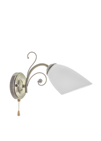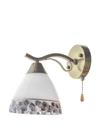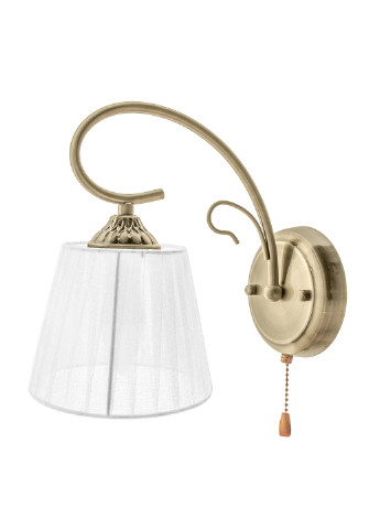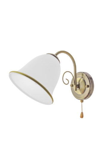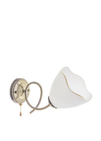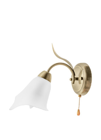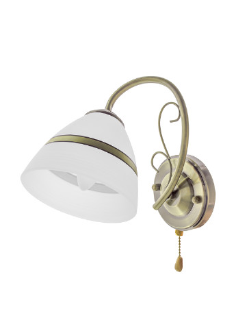 бра LK-565W / 1 E27 AB - кращий варіант додаткового освітлення для вітальні, спальні або передпокою. Світильник виготовлений з металу і скла. Конструкція представлена невеликим фігурним металевим каркасом кольору старе золото, до якого прикріплений один скляний плафон білого кольору. Для роботи необхідно використовувати одну лампу з цоколем Е27 (розжарювання, енергозберігаюча, світлодіодна). Для максимальної зручності у використанні дана модель обладнана ланцюжком-вимикачем. Ширина: 100 мм, висота: 300 мм