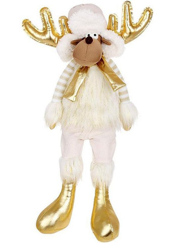 М'яка різдвяна (новорічна) іграшка "Сидячий Олень". Комбіновані текстильні матеріали. Розмір: 23х16см, висота 55см. Кремовий із золотистим.