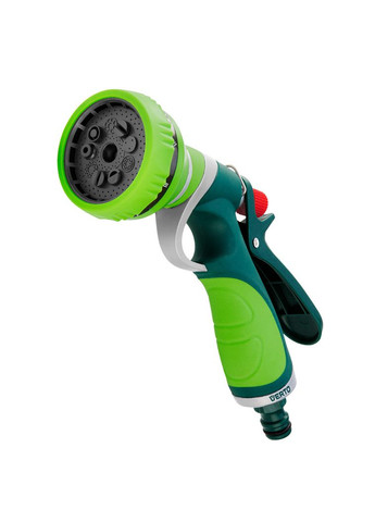 Багатофункціональний зрошувач NEO (арт. 15-706) із 7 режимами роботи ідеально підходить для поливу газонів, садових рослин та прибирання. Функціональність пристрою дозволяє налаштувати тип розпилення відповідно до задачі: безперервний потік, туман, кілька потоків із центру, м'який потік, душ, плоский потік або розсіяний потік. Унікальна система блокування тригера "КЛІК" забезпечує зручність використання: увімкніть блокування за допомогою повзунка, і вода тектиме без необхідності тримати спусковий гачок. Для зупинки потоку достатньо натиснути спусковий гачок повторно. Зрошувач оснащений ручкою регулювання витрати води та ергономічною нековзною рукояткою для максимального комфорту та ефективності. Висока якість матеріалів гарантує довговічність і надійність.