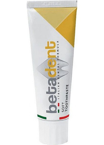 Ваші зуби і ясна схильні до чутливості? Використовуйте зубну пасту Soft бренда Betadent, щоб щоденна гігієна ротової порожнини пройшла ефективно і безболісно. Засіб має спеціальну неабразивну і щадну формулу, що включає бісаболол (з ромашки) та калієві солі. Він сприяє ретельному очищенню, водночас не провокуючи реактивності і кровоточивості. За регулярного застосування ви побачите приємні зміни — гарну усмішку, яка випромінюватиме сяйво білизни. Особливості Betadent Soft Toothpaste: - ретельно усуває бактеріальний наліт і залишки їжі;- добре очищає міжзубні проміжки;- видаляє застарілі плями з емалі;- знижує чутливість і відчуття дискомфорту;- підтримує природну мікрофлору ротової порожнини;- освіжає подих.