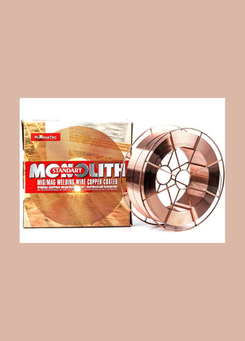 Зварювальний дріт PlasmaTec Standart Monolith G4Si1 (1.6 мм, 15 кг) обміднений на металевій котушці Дріт зварювальний обміднений марки G4Si1 застосовується для автоматичного та напівмеханізованого зварювання вуглецевих і низьколегованих сталей для отримання міцності більше, ніж при застосуванні G3Si1. Зварювальний дріт широко використовується для зварювання трубопроводів, в суднобудівній галузі, в авто та машинобудуванні, а також у будівництві. Дріт застосовується при роботі з тонколистовим металом, при цьому шов формується за один прохід (кілька проходів). Зварювальний обмежений дріт використовується для зварювання (наплавлення) виробів, деталей та конструкцій з вуглецевих та низьколегованих сталей у нижньому, вертикальному та стельовому положенні. Зварювання можна проводити як в газових сумішах (міксах) так і в чистому СО2. Для отримання якісного шва окалину, іржу та різні оксидні покриття необхідно видалити. У процесі виробництва дроту плазмова вакуумно-дугова обробка забезпечує ефективне очищення поверхні. В результаті цього поверхня обробленого дроту набуває характерного сріблястого кольору і високу адгезійну здатність, що при подальшому омідненні забезпечує суцільне і міцне покриття. Завдяки якісному покриттю та стабільному діаметру дроту по всій довжині забезпечується рівномірна подача та економна витрата мідних струмопровідних накінечників. Рядне намотування істотно збільшує період експлуатації дорогих зварювальних напівавтоматів. Забезпечується можливість роботи з різними видами зварювального обладнання. Відзначено стійке горіння дуги, яке спостерігається при широких діапазонах режимів зварювання, мінімальне розбризкування металу, відсутність напливів та пористості у зварювальному шві. Механічні властивості металу, що наплавляється: Міцність на розрив – 530-680 Н/мм²Відносне подовження - ≥20%Ударна в'язкість -40°С - ≥47Межа плинності - ≥460 Н/мм² Комплектація: Зварювальний дріт PlasmaTec - 1 шт.