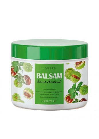 Масажний гель-бальзам із кінським каштаном Livesta 500 мл має широкий спектр дії та високу ефективність. Натуральний склад. З охолоджувальним і знеболювальним ефектом. Має протизапальну й охолоджувальну дію, зменшує больові відчуття, викликані варикозом, зміцнює судини та знімає набряклість. Також допомагає зменшити біль у зоні шиї, плечей і ніг. Екстракти арніки, розмарину та звіробою, які входять до складу гель-бальзаму, покращують циркуляцію крові, заспокоюють і розслаблюють тканини. Рекомендується наносити масажними рухами на зони варикозного розширення вен, а також на зону спини та шиї у разі больового синдрому.
