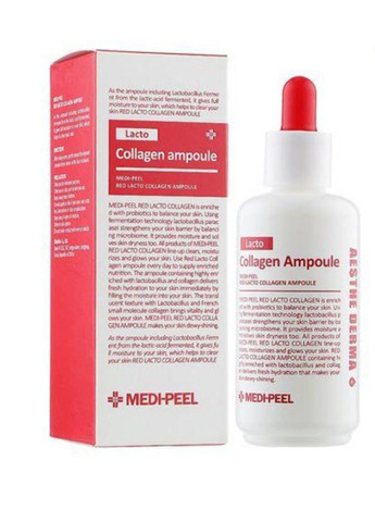 Сироватка MEDI-PEEL RED LACTO COLLAGEN TIGHTENING AMPOULE - ефективний засіб для відновлення пружності шкіри, вирівнювання гладкості та покращення загального стану обличчя. Засіб працює над вирівнюванням текстури, тону, зменшення проявів зморшок та заломів. Сироватка діє, як і тонік очищує пори, зменшує набряки та усуває сліди втоми. В складі є ферментовані лактобактерії - зміцнюють мікробіом шкіри, підвищують її захисні функції. Гідролізований колаген - забезпечує пружність та гладкість шкіри. Екстракт сосни та зеленого чаю - потужні антиоксиданти, які захищають від старіння, зменшують набряки через декілька хвилин. Екстракт кавових зерен, винограду та хурми - тонізують, зволожують клітини епідермісу та освітлюють пігментні плями. Завдяки своєму складу сироватка від MEDI-PEEL швидко поглинається, при цьому роблячи шкіру максимально швидко еластичною. До 200 годин зволоження може створити сироватка, бо вона розроблена для дбайливого впливу і підходить для всіх типів шкіри. Нанесення: Після використання тонера візьміть відповідну кількість і акуратно розподіліть по всьому обличчю. Склад: Purified Water, Octyldodecanol,Cococaprylate/caprate, 1,2-hexanediol, Niacinamide, Glycerin, BifidobacteriumLysate (8,700 Ppm), Butylene Glycol, Non-soap Hydrogenated Olive Oil. Acrylate/ C10-30 Alkylacrylate Crosspolymer, Tromethamine,Ethylhexyl Glycerin, Xanthan Gum, Adenosine, Disodium Edta, Cabbage Extract, Lactobacillus Fermentation (200 Ppm), Chamomile Flower Oil, Ectoine, Glycine, Cucumber Extract, Chinese PurpleExtract, Hydroxyproline, Proline, Elm Root Extract, Hyaluronic Acid, Hydrol.Purified Hyaluronic Acid, Hydrolyzed Sodium Hyaluronate, Polyglyceryl-10Stearate, Potassium Hyaluronate, Sodium Hyaluronate, HydroxypropyltrimoniumHyaluronate, Sodium Aluronate Crosspolymer, Cetearyl Alcohol, Acetylated SodiumHyaluronate, Sodium Stearoyl Glutamate, Sh-polypeptide-121 (20 Ppm), Sh-Polypeptide-50, Palmitic Acid, Stearic Acid, Soluble Collagen (10 Ppm),Safflower Seed Oil, Hydrogenated Phosphatidylcholine, Evening Primrose Oil,Squalane, Potassium Sorbate, Acetyl Hexapeptide-8, Ceramide Np, CopperTripeptide-1, Hexapeptide-9 , Palmitoylpenta-peptide-4, Palmitoyltripeptide-1,Tripeptide-1, Polyquaternium-51.