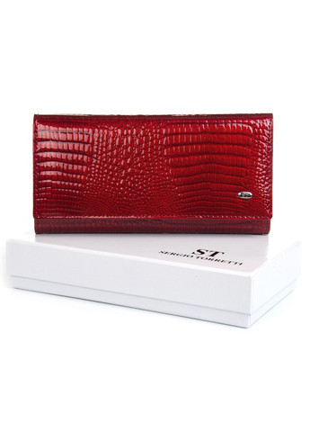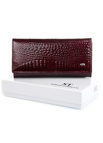 Жіночий полегшений шкіряний гаманець Sergio Torretti. Клапан закривається на магніт. Зовнішня частина - рельєфна лакова шкіра серії Croco, внутрішня частина - натуральна м'яка шкіра. Всередині знаходяться 4 відкритих відділення для банкнот, дві кишені-монетниці на блискавці, одна велика відкрита кишеня, 8 кишень для візитних карток. Зовні гаманця на зворотному боці є кишеня на блискавці. Розмір (см.) 18,5*9,5. Проставляється в коробці.