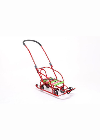 Санки дитячі з механізмом висувних колісних шасі Область застосування: для катання та перевезення дітей Матеріал: каркас – метал; сидіння – дерев'яні рейки; ремінь безпеки – ремінна стрічка Переваги: * механізм висувних колісних шасі * спинка та ручка, що складається * поперечна рейка * подовжена база * ступінчаста підніжка * ремінь безпеки * гумові колеса на полозах для зручного транспортування * вантажопідйомність санок: не > 30 кг на колесах, не > 50 кг на рейках Габарити: * в розкладеному вигляді (Д без ручки х Ш по спинці х по спинці): 820х390х420/480мм * висота санок по сидінню: 200/250мм * сидіння (ДхШ): 450х290мм * плоскі полозья: 30х15мм * висота з ручкою: 900/990мм * в упаковці (ДхШхВ): 1050х380х300мм * Вага: 8,85 кг
